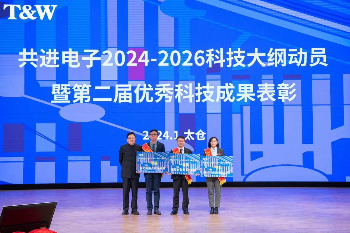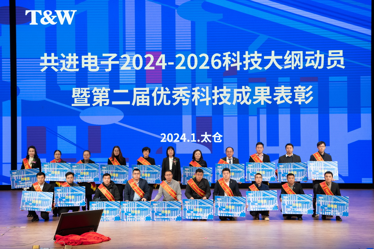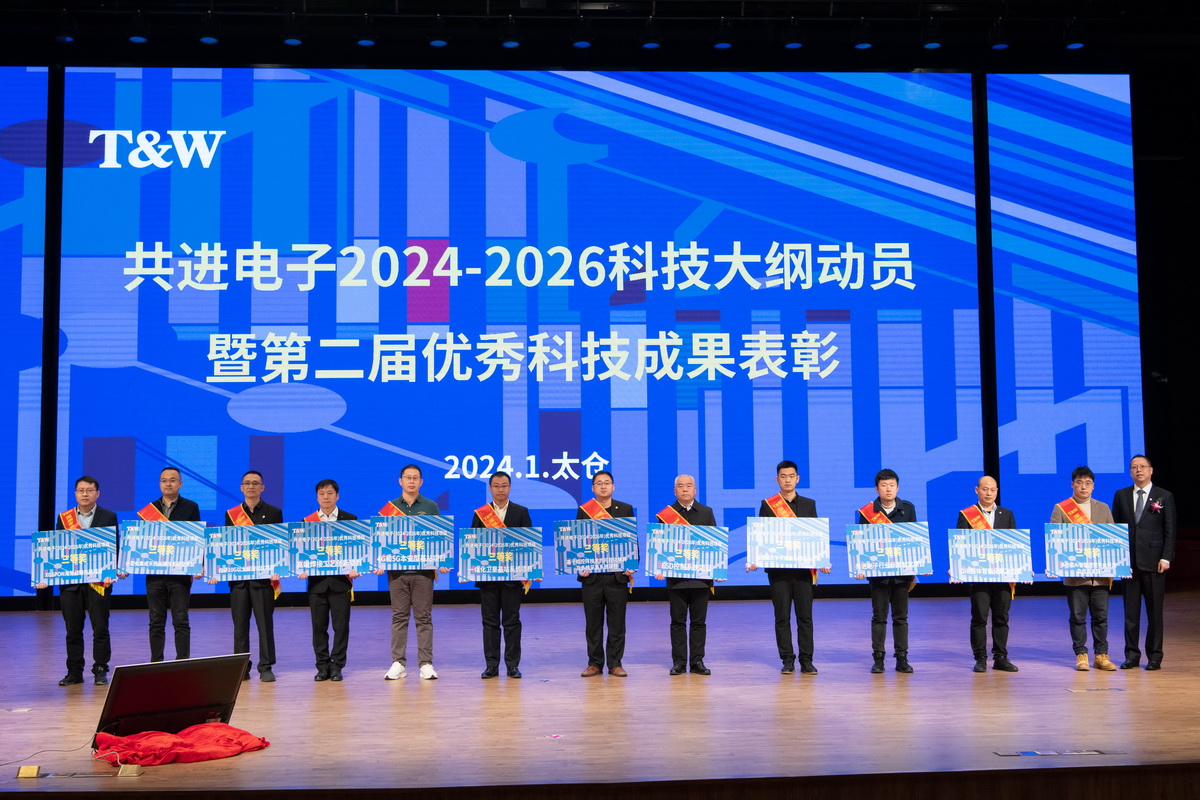 Recognizing the situation, unifying thoughts, promoting the development of high-tech; increasing investment, encouraging all employees to work hard, and roll up their sleeves and work harder. On January 27th, the mobilization of the 2024-2026 science and technology outline and the second session of outstanding scientific and technological achievements commendation conference of Gongjin Electronics was held in the Tongwei Conference Hall in Taicang. The company's chairman Wang Dawei, director of the strategic committee of the board of directors Tang Funan, general manager Hu Zumin, deputy general manager Wei Honghai, Wang Lan, Tang Xiaolin, Long Xiaojing, secretary of the board of directors He Yimeng and other leaders attended the meeting. The conference was held in Taicang as the main venue, with branch venues in Pingshan, Shenzhen, Dalian, Xi'an, Jinan and Vietnam. The general manager of each subsidiary, leaders at the director level of the company, representatives of outstanding science and technology project groups, all party members in East China, all employees above M7 and P4 (positions) in East China, representatives of P5 (positions) technical positions in East China attended the main venue. All employees at or above P7 (positions) level and all party members in all regions of the company as well as representatives of P5 (positions) technical positions in Pingshan and Vietnam factories attended the branch venue.